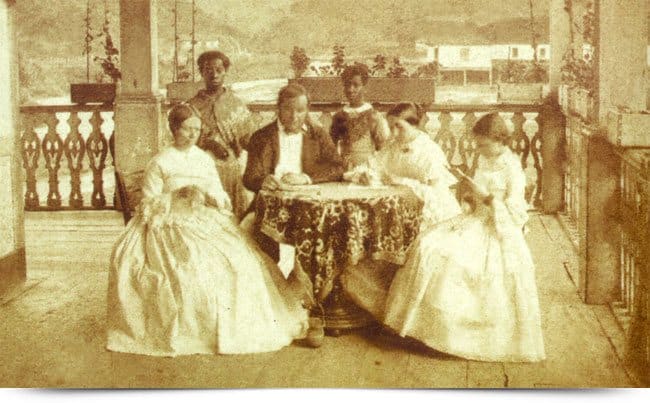 Uma família de brasileiro brancos e suas escravas domésticas, Império do Brasil, 1860