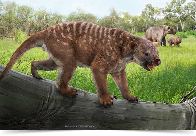 À medida que entraram no continente encontraram um universo estranho de criaturas desconhecidas que incluía um canguru de 200 quilos e 2 metros de altura e um leão-marsupial, grande como um tigre moderno, que foi o maior predador do continente. (…)