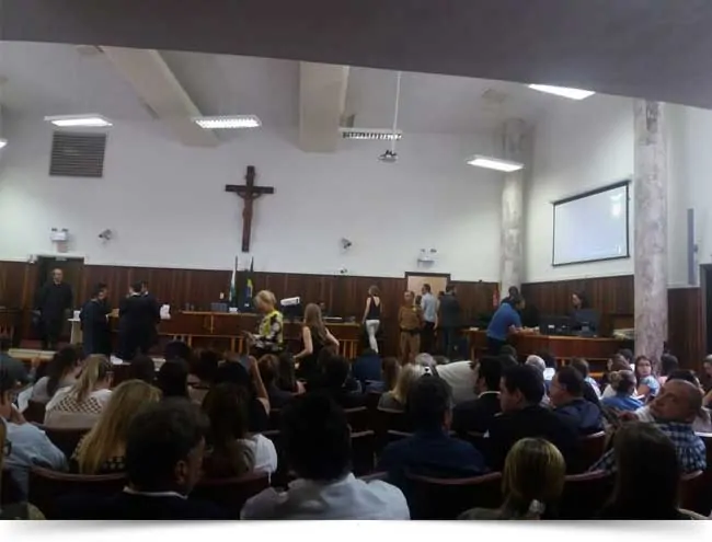 Sala do Tribunal do Juri de Curitiba durante o julgamento do deputado Carli Filho por acidente de trânsito com a morte de dois jovens, há 9 anos, e condenado há 9 anos.