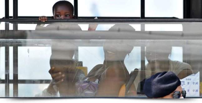 - Migrantes são colocados em ônibus ao desembarcarem no porto de Palermo, no sul da Itália