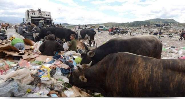 Vacas procuram comida em lixão em Tegucigalpa (Honduras). AFP/BOL Fotos
