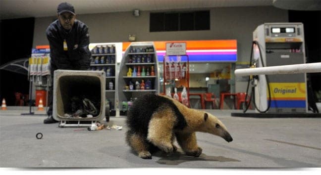 Funcionários de posto de gasolina [combustíveis] em Blumenau recebem visita de um tamanduá, na noite desta quinta-feira (15). A Polícia Ambiental recolheu o animal na madrugada desta sexta-feira.