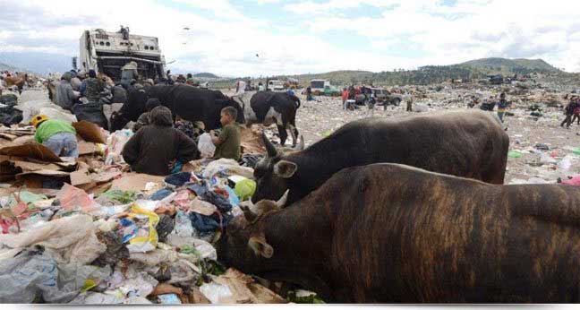 Vacas procuram comida em lixão em Tegucigalpa (Honduras).