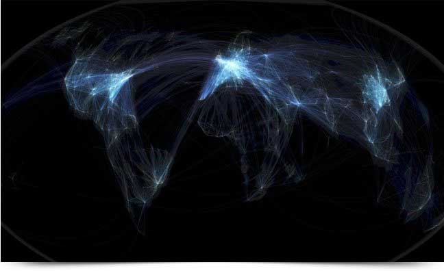 Mapa desenvolvido pelo consultor canadense Michael Markieta recria o globo terrestre de acordo com as rotas aéreas.