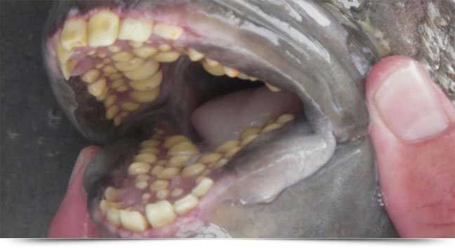 O Sargo-de-dente (Archosargus probatocephalus) é um peixe marinho que possui dentes similares aos humanos, com incisivos e molares.
