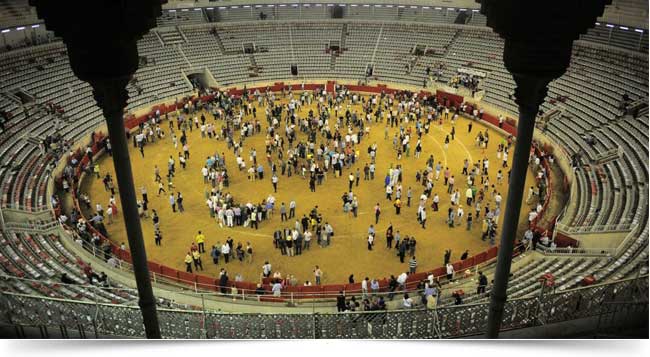 Público invade a arena Monumental, em Barcelona, que neste domingo foi palco da última tourada. Em 2012, entra em vigor a lei que proíbe as tradicionais disputas entre touro e toureiro.
